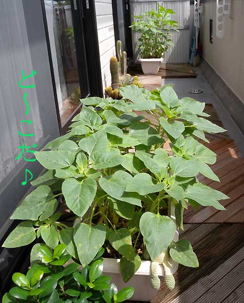 もう1つのひまわりくんはつぼみは付きましたがまだ先のようです。