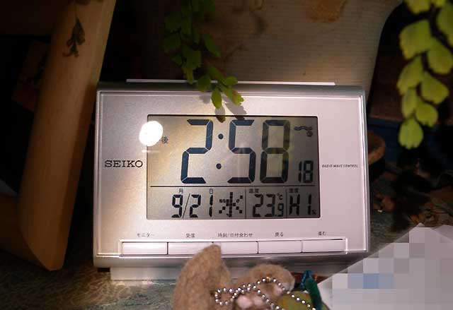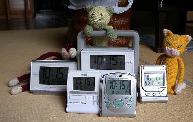 温度計付き電波置時計。